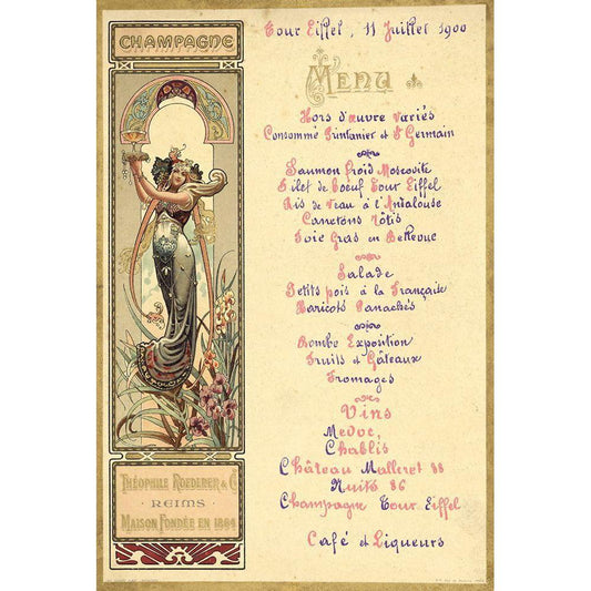 Paris Nouveau Menu Black Modern Wood Framed Art Print with Double Matting by Vintage Apple Collection