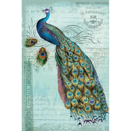 Peacock Nouveau Black Modern Wood Framed Art Print with Double Matting by Lula Bijoux and Company