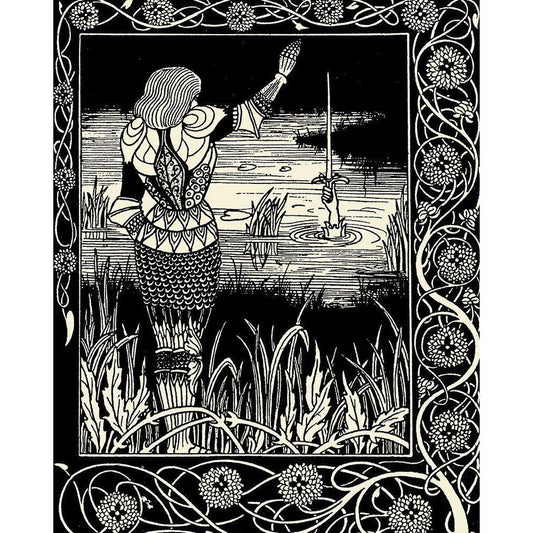 Morte DArthur 1893 - Excalibur from Lake White Modern Wood Framed Art Print by Beardsley, Aubrey