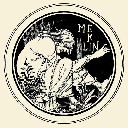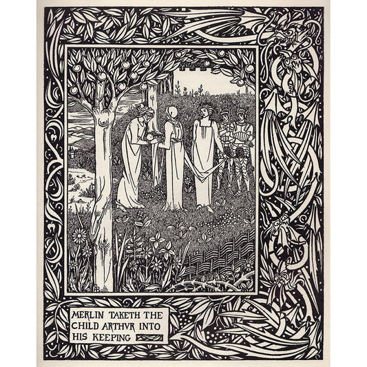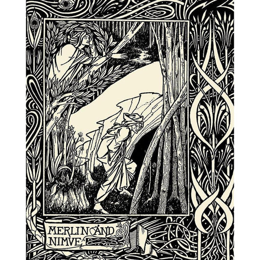 Morte DArthur 1893 - Merlin Taketh White Modern Wood Framed Art Print by Beardsley, Aubrey