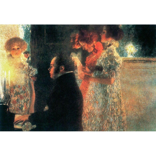 Schubert at the Piano II White Modern Wood Framed Art Print by Klimt, Gustav