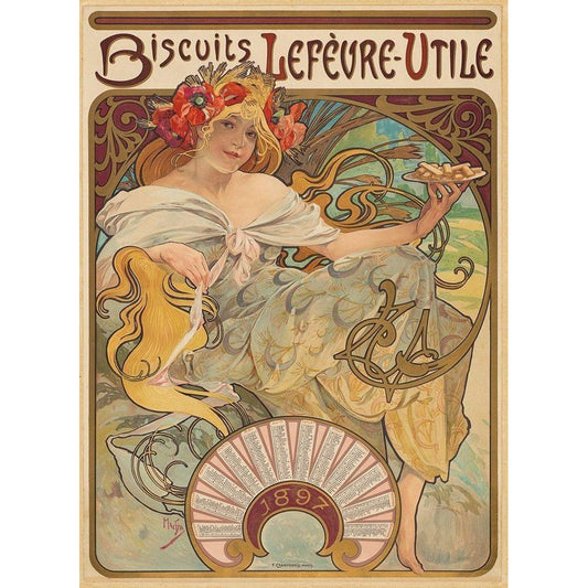 Biscuits Lefèvre-Utile White Modern Wood Framed Art Print by Mucha, Alphonse