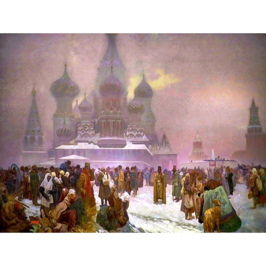The Abolition of Serfdom in Russia White Modern Wood Framed Art Print by Mucha, Alphonse