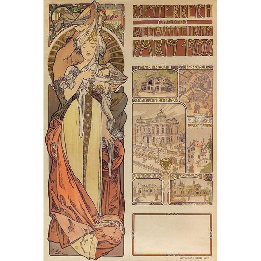 Poster Austria at the World Exhibition Paris 1900 White Modern Wood Framed Art Print by Mucha, Alphonse