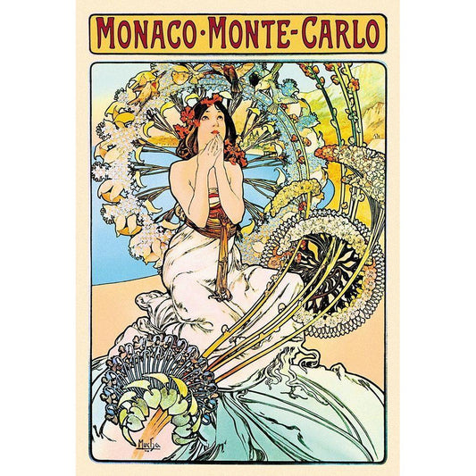 Monaco - Monte Carlo White Modern Wood Framed Art Print by Mucha, Alphonse