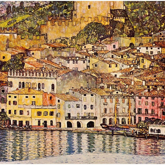 Malcesine On Lake Garda 1913 White Modern Wood Framed Art Print by Klimt, Gustav