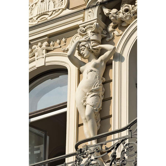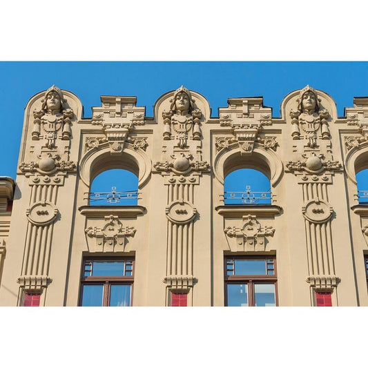 Art Nouveau building on Alberta Street in central Riga-Latvia White Modern Wood Framed Art Print by Su, Keren
