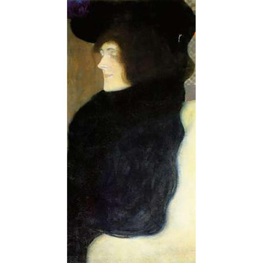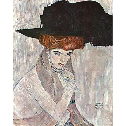 Lady With Black Feather Hat 1910 White Modern Wood Framed Art Print by Klimt, Gustav