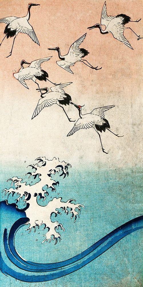 Cranes Flying (detail) White Modern Wood Framed Art Print with Double Matting by Ando, Hiroshige