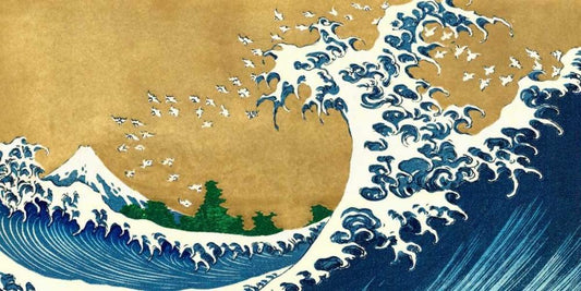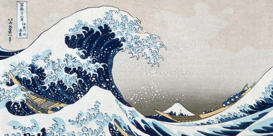 The Wave off Kanagawa White Modern Wood Framed Art Print with Double Matting by Hokusai