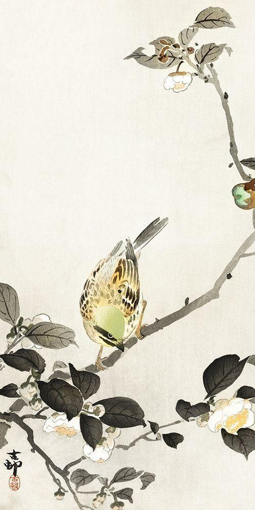 Bunting on blossom branch White Modern Wood Framed Art Print with Double Matting by Koson, OharaRegular price From $39.99 USDRegular priceUnit price per-