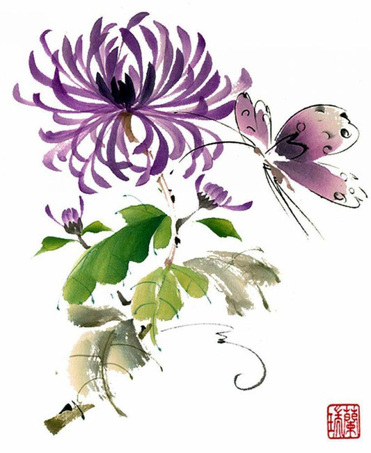 Medium Striking Chrysanthemums I White Modern Wood Framed Art Print with Double Matting by Slocum, Nancy
