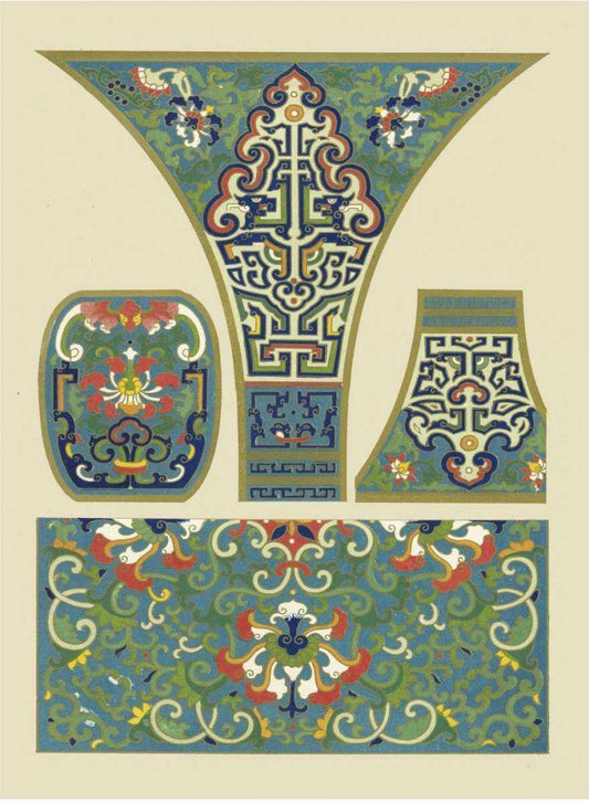 Blue Oriental Designs IV White Modern Wood Framed Art Print with Double Matting by Vision Studio