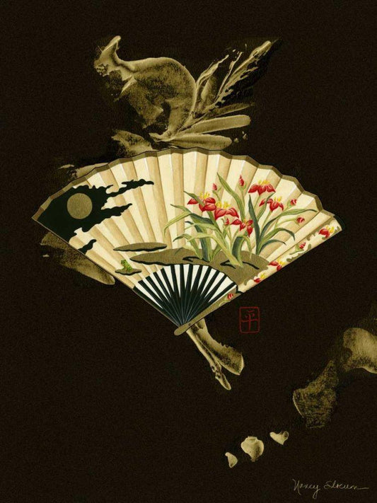 Oriental Fan II White Modern Wood Framed Art Print with Double Matting by Slocum, Nancy