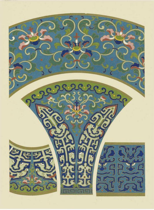 Blue Oriental Designs III White Modern Wood Framed Art Print with Double Matting by Vision Studio