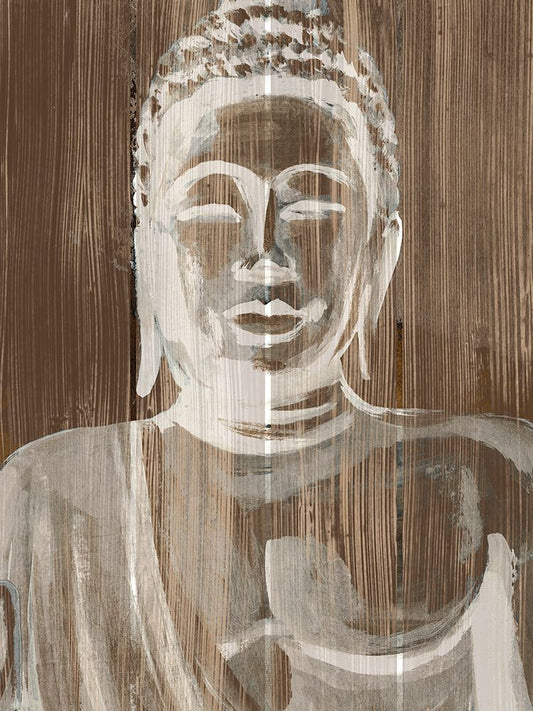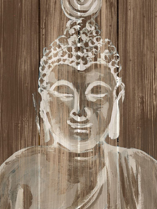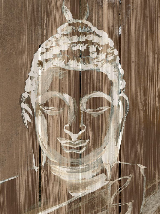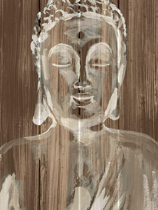 Buddha on Wood I White Modern Wood Framed Art Print with Double Matting by Warren, Annie