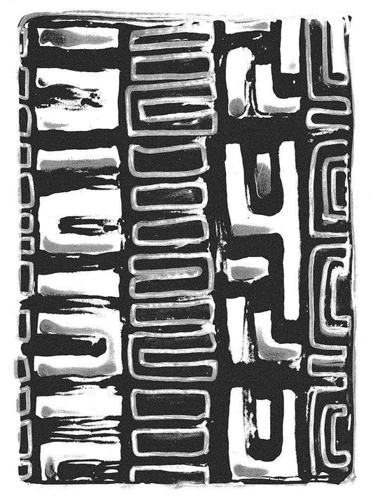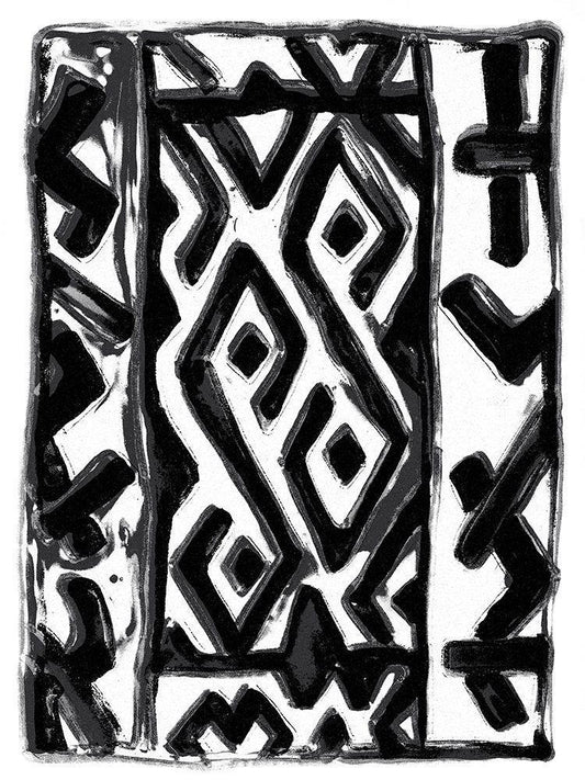 African Textile Woodcut I White Modern Wood Framed Art Print with Double Matting by Stellar Design Studio