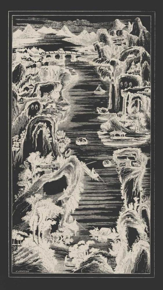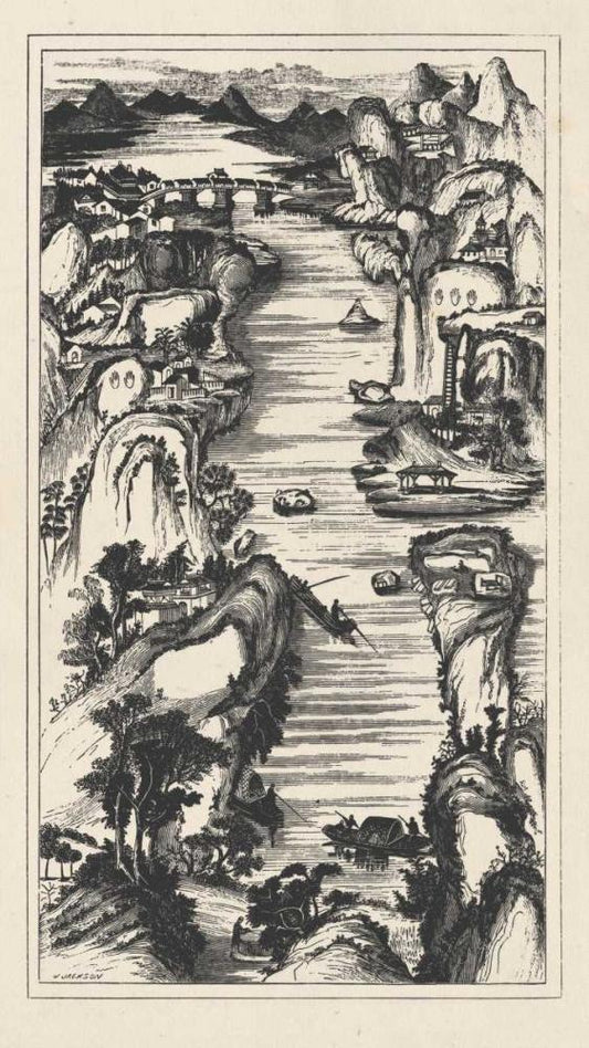 Chinese Birds-eye View in Grey I White Modern Wood Framed Art Print with Double Matting by Vision Studio
