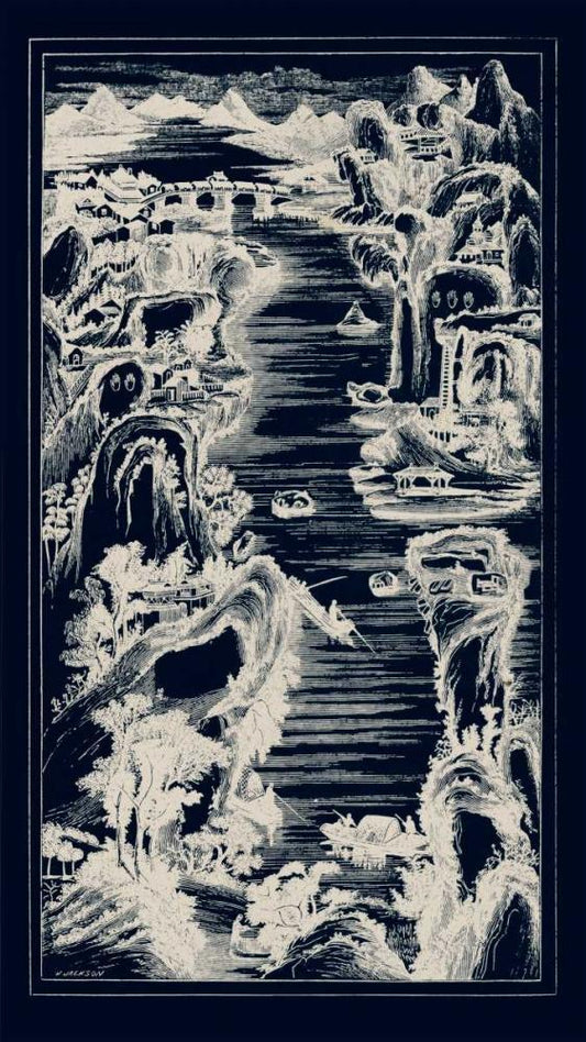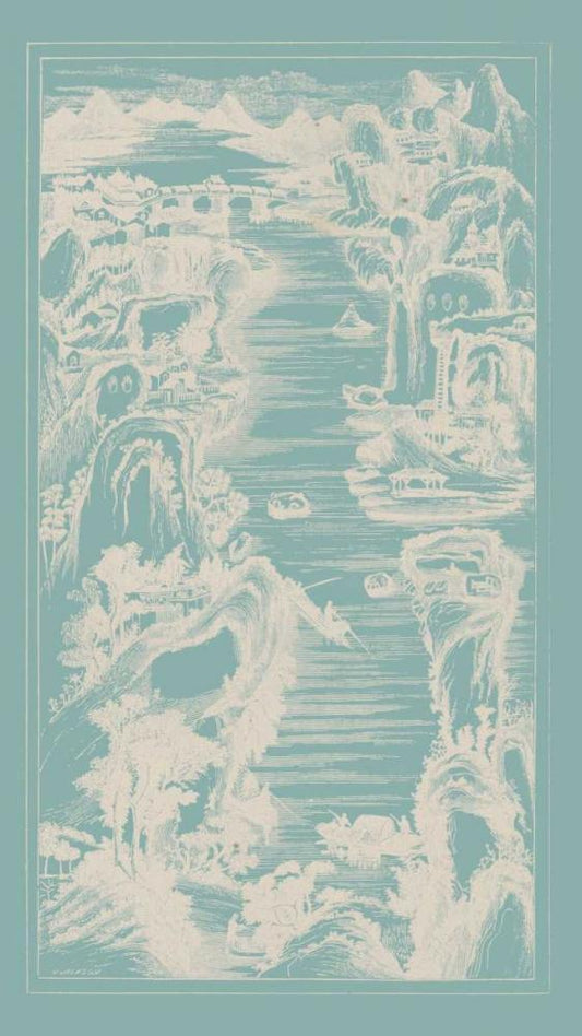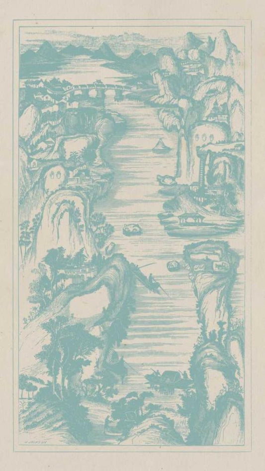 Chinese Birds-eye View in Navy I White Modern Wood Framed Art Print with Double Matting by Vision Studio