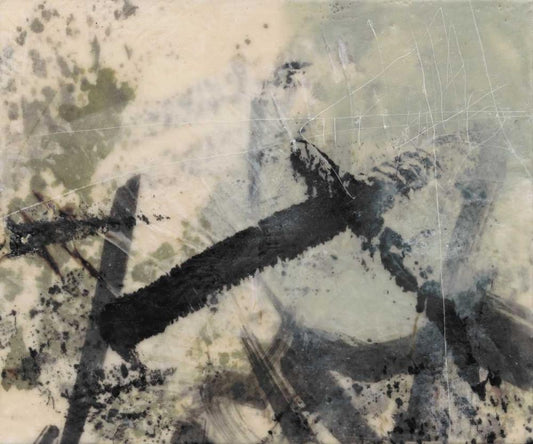 Sumi-e and Wax II White Modern Wood Framed Art Print with Double Matting by Goldberger, Jennifer
