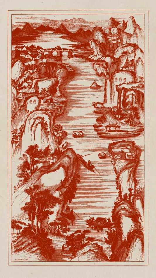 Chinese Birds-eye View in Red I White Modern Wood Framed Art Print with Double Matting by Vision Studio