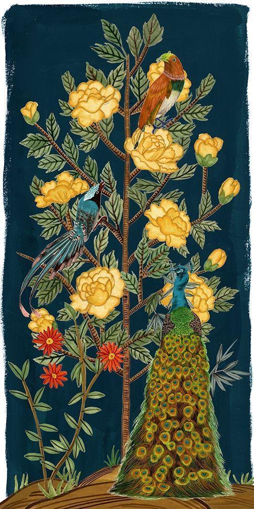 China Garden II White Modern Wood Framed Art Print with Double Matting by Wang, Melissa