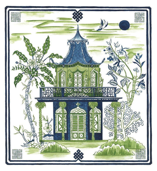 Pagoda Visit I White Modern Wood Framed Art Print with Double Matting by Wang, Melissa