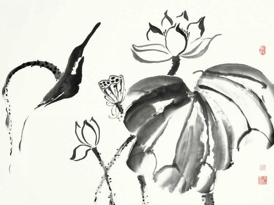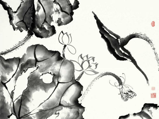 Lotus Study II White Modern Wood Framed Art Print with Double Matting by Rae, Nan