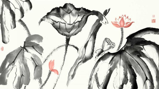 Lotus Study with Coral II White Modern Wood Framed Art Print with Double Matting by Rae, Nan
