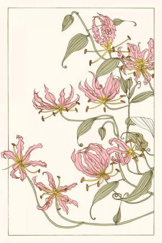 Botanical Gloriosa Lily I White Modern Wood Framed Art Print with Double Matting by Wang, Melissa
