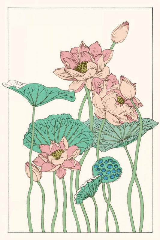 Botanical Gloriosa Lotus I White Modern Wood Framed Art Print with Double Matting by Wang, Melissa
