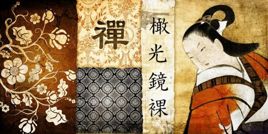 Collage Asia 01 White Modern Wood Framed Art Print with Double Matting by Adamsky