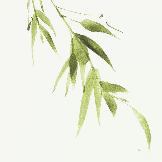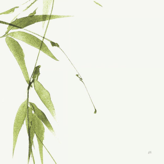 Bamboo V Green White Modern Wood Framed Art Print with Double Matting by Paschke, Chris