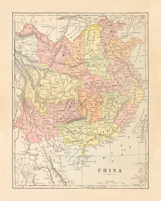 Map of China White Modern Wood Framed Art Print with Double Matting by Wild Apple Portfolio