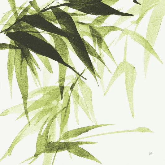 Bamboo IV Green White Modern Wood Framed Art Print with Double Matting by Paschke, Chris