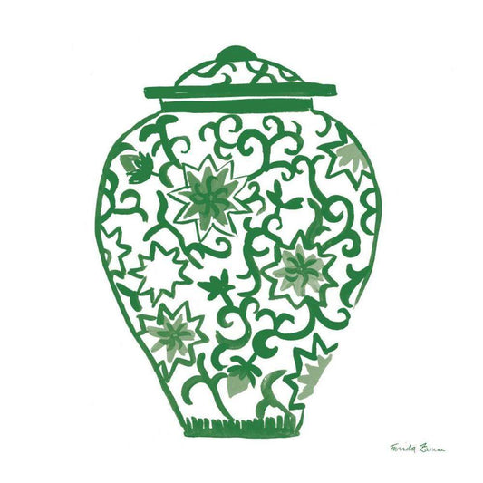 Chinoiserie III Green White Modern Wood Framed Art Print with Double Matting by Zaman, Farida