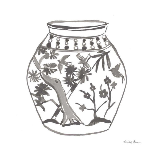 Chinoiserie VII Gray White Modern Wood Framed Art Print with Double Matting by Zaman, Farida