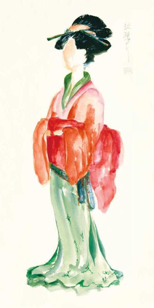 Geisha I Bright Crop White Modern Wood Framed Art Print with Double Matting by Paschke, Chris