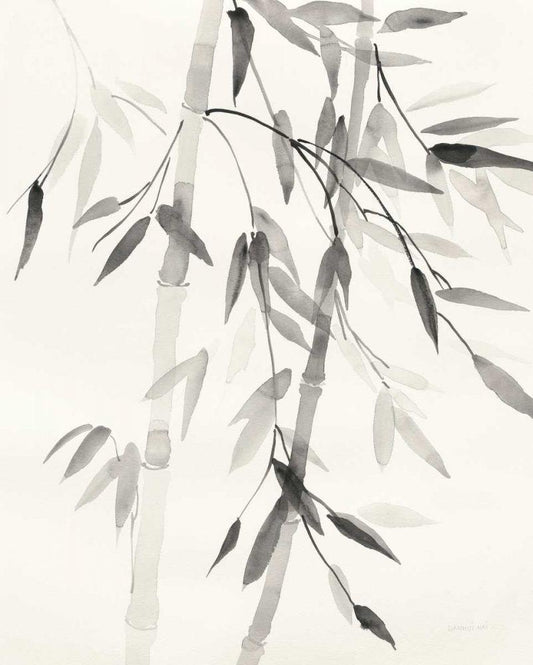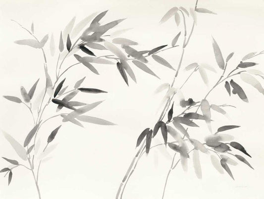 Bamboo Leaves II White Modern Wood Framed Art Print with Double Matting by Danhui, Nai