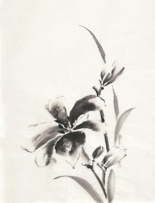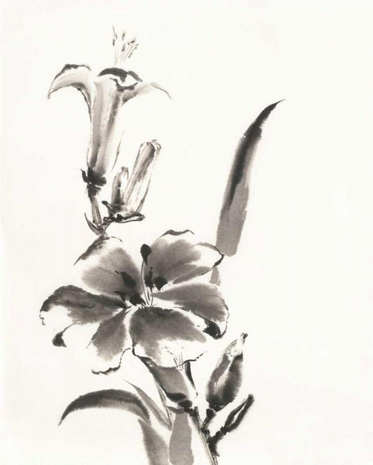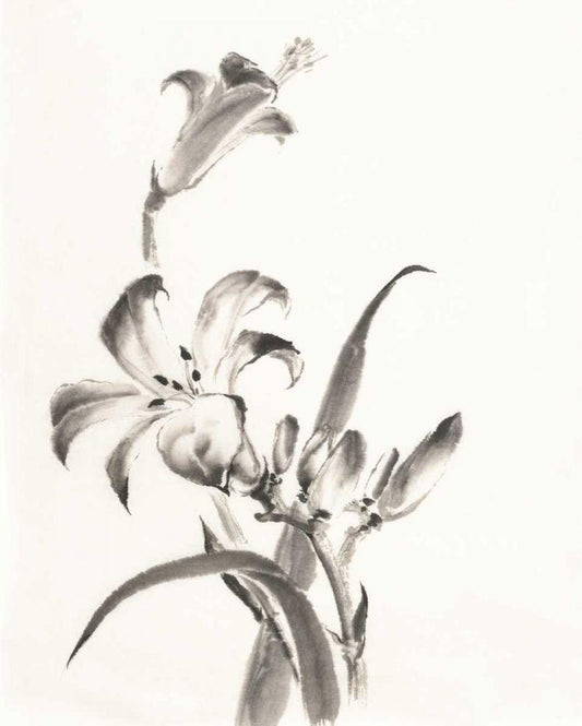 Sumi Daylily II White Modern Wood Framed Art Print with Double Matting by Paschke, Chris