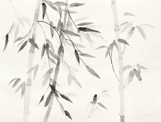 Bamboo Leaves III White Modern Wood Framed Art Print with Double Matting by Danhui, Nai