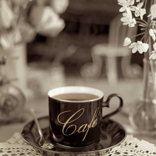Nagano Cafe - 2 White Modern Wood Framed Art Print with Double Matting by Blaustein, Alan