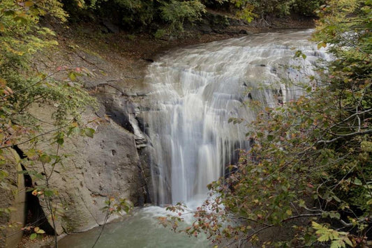 Hokkaido Waterfall - 2 White Modern Wood Framed Art Print with Double Matting by Blaustein, Alan