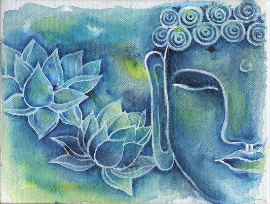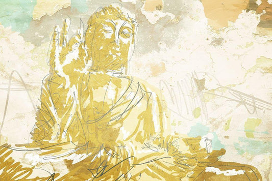 Painted Buddha White Modern Wood Framed Art Print with Double Matting by Prime, Marcus
