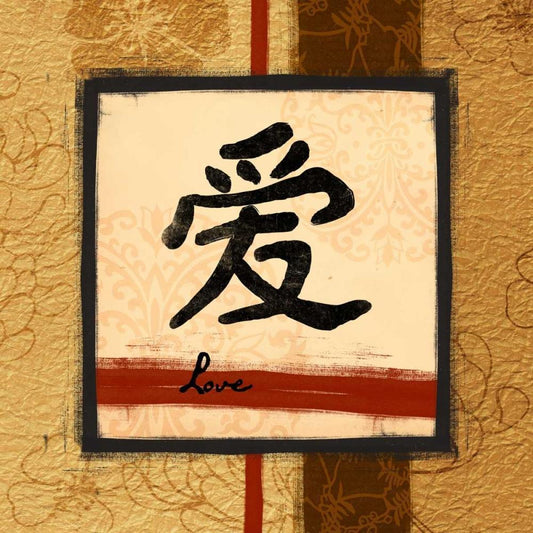 Asian Blackgold Love White Modern Wood Framed Art Print with Double Matting by Grey, Jace