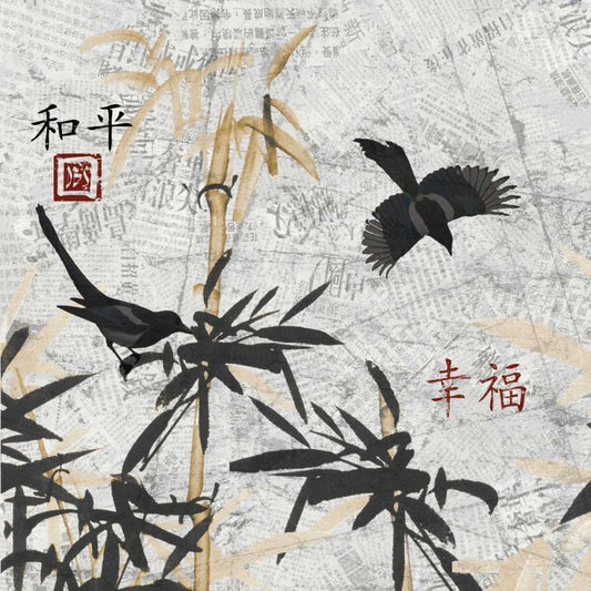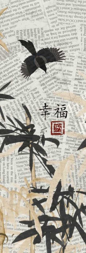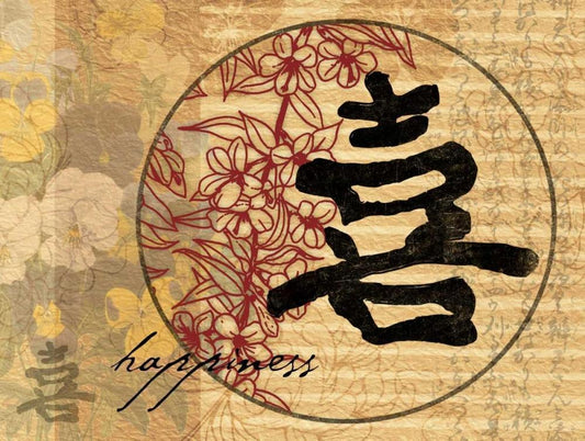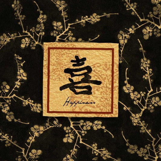 Asian Blackgold Happiness White Modern Wood Framed Art Print with Double Matting by Grey, Jace