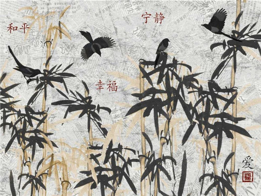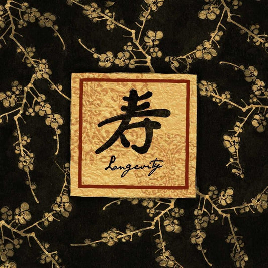 Asian Blackgold Love Longevity White Modern Wood Framed Art Print with Double Matting by Grey, Jace