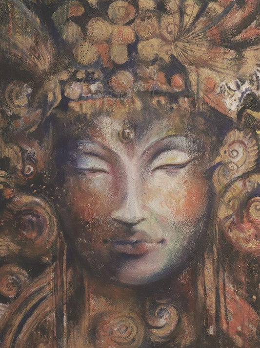 Buddha Neutral Close-Up White Modern Wood Framed Art Print with Double Matting by Debs, Emma Catherine