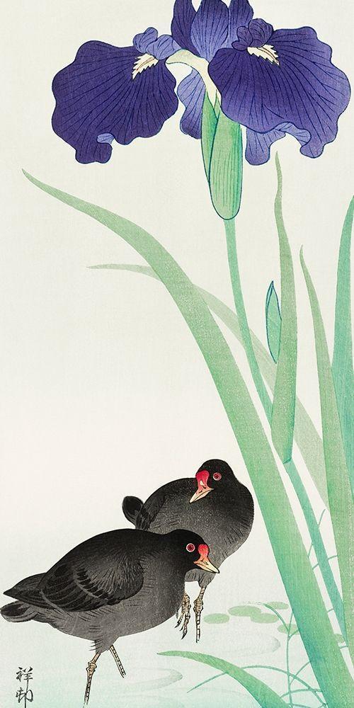 Waterhoots and iris White Modern Wood Framed Art Print with Double Matting by Koson, Ohara