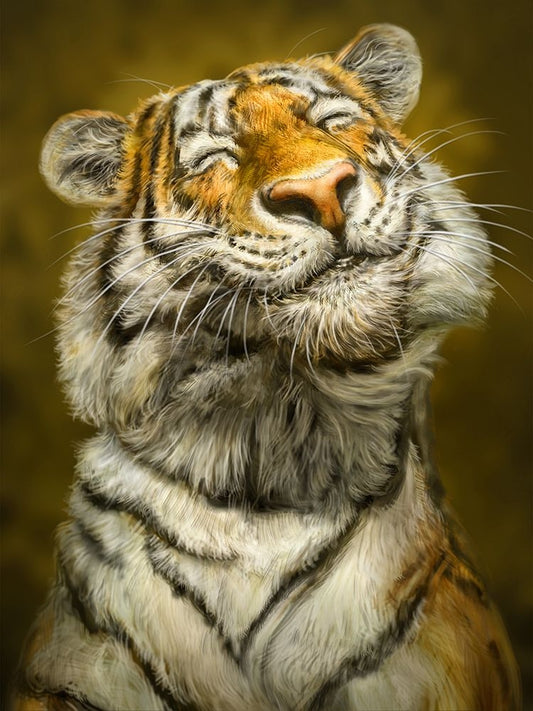 Smiling Tiger White Modern Wood Framed Art Print with Double Matting by LaMontagne, Patrick